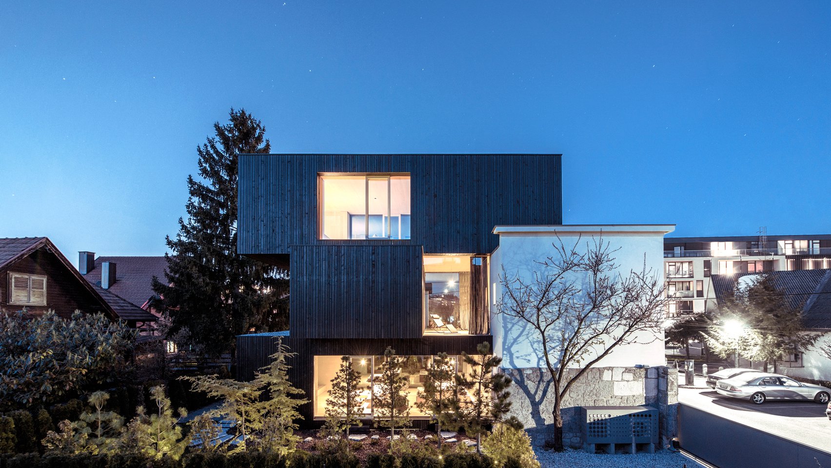 Slovenian house with trio of stacked wooden boxes